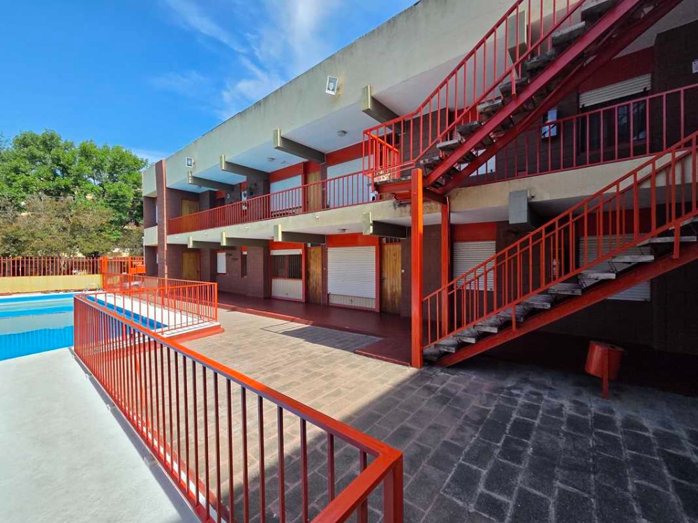 Edificio con amplia pileta.